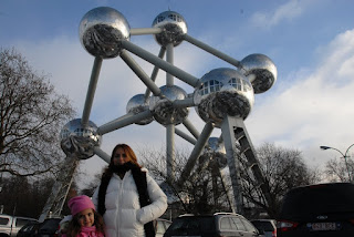 Brüksel çok küçük bir şehir olduğundan heryeri bir çırpıda görüyorsunuz ama biraz şehir dışına çıkarsanız, bakmayın şehir dışı dediğime çok değil 15 dakikalık bir metro yolculuğuyla Atomium’a varabilirsiniz. Şehrin kuzey batısında çok güzel yemyeşil bir parkın kenarına kurulmuş, bir atom çekirdeğinin mikroskobik görüntüsünün 102 metre yüksekliğinde olan boyutunun inşa edildiği bir yer burası. 9 Küreden 5 tanesi halka açık ve herbirine dev merdivenlerle ulaşıyorsunuz. En tepedeki atom çekirdeğine çıktığınızda ise Brüksel şehrini tepeden izliyorsunuz. 10 ar kişilik gruplar halinde bindiğiniz asansör 25 saniye gibi bir hızla sizi en tepedeki küreye çıkartıyor, asansöre binmek bile başlı başına bir zevk.