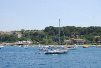 nu duyunca hemen biletlerimizi aldık. Tekne Cannes’dan 15 dakikada adaya ulaşıyoraama bizim ada vapurlarına hiç benzemiyor doğrusu, bizim vapurlar şarkılarla türkülerle, zeytinyağlı dolmalar eşliğinde gider adaya hatta bir tarafı aşırı insan ağırlığından dolayı yana yatar, hele Pazar günleri kalabalıktan yürüyemezsiniz vapurda. Bu tekne çok sakin, tek hareket haftaya evlenecek olan kızın teknedeki tüm erkekleri öpme töreni. Adetten herhalde , kız kıza tatile çıkmışlar ve kız ne kadar erkek varsa kaptanlar da dahil herkesi öptü. Adaya inince bu kadar harika bir yer olabileceğini hiç tahm