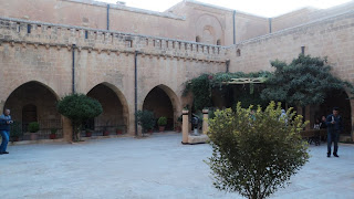 Mardin’de öğle yemeğini yediğimiz Erdoba Evleri Artuklulardan kalma gerçekten Mardin’de taşın konuştuğunu anlatan harika bir yapı. Ovaya bakan terası, birkaç konaktan oluşan otel odaları ve harika avlusuyla gerçekten seyranlık bir mekan. Günlerdir kuru yediğimizden menünün açılışı mercimek çorbası Erdoba evleri denince ilk aklıma gelenlerden oldu ayrıca. Yemek sonrası gittiğimiz ve İsa’dan sonra 5.yy da inşa edilen Deyrülzafaran Manastırı ya da Mor Hananyon Manastırı hakikaten de harika bir konuma sahip. Mor bu arada Aziz demekmiş. Gerek mimarisi gerekse Mezopotamya ovasına bakan manzarası ile insanda çok başka duygular uyandırıyor Deyrülzafaran. Manastıra girişte biraz sıra bekliyorsunuz çünkü burayı yerel rehberler grup halinde gezdiriyorlar. Siz beklerken kafede safran çayınızı yudumluyorsunuz zaten Deyrülzafaranda safran diyarı demekmiş. Kubbeleri, kemerli sütunları, ahşap el işlemeleri, iç ve dış mekanlardaki taş nakışları ile harika bir yapı olan Deyrulzafaran Manastırı, şu anda da Süryani Kilisesinin önemli dini merkezlerinden biri. Güneş tapınağı denilen gezdiğimiz ilk bölüm, beşik tonozlu şeklinde yontulmuş taşlardan olup yüzeyi 25 metrekare imiş. İkinci kısım ise ilginç bir tavan yapısına sahip. Tavanı oluşturan düz ve iri taşlar geometrik yapıda olup aralarında harç, kum, kireç ve benzeri malzeme kullanılmadan birbirine yaslanmış ve kenetlenmiş durumda yerleştirilmiş. Yani bugün benim diyen mimarlar örnek almalı bence. Tabi ben bu bilgileri duyunca biraz panik atak durumu yaşamadım değil. Allahtan Azizler Evi denilen bölüme geçtik de biraz nefes aldım diyeceğim ama o da çok doğru olmayacak. Bazı azizlerin kemikleri ile birlikte Manastır’da görev yapan bazı patrik ve metropolitlerin de burada gömülü olduğunu duyuna insanın içi bir tuhaf oluyor doğrusu. Şu anda burada görev yapan 59 yaşındaki metropolit de ölünce buraya gömülecekmiş. İnsan bu duyguyla, nereye gömüleceğini görerek burada nasıl yaşar acaba?