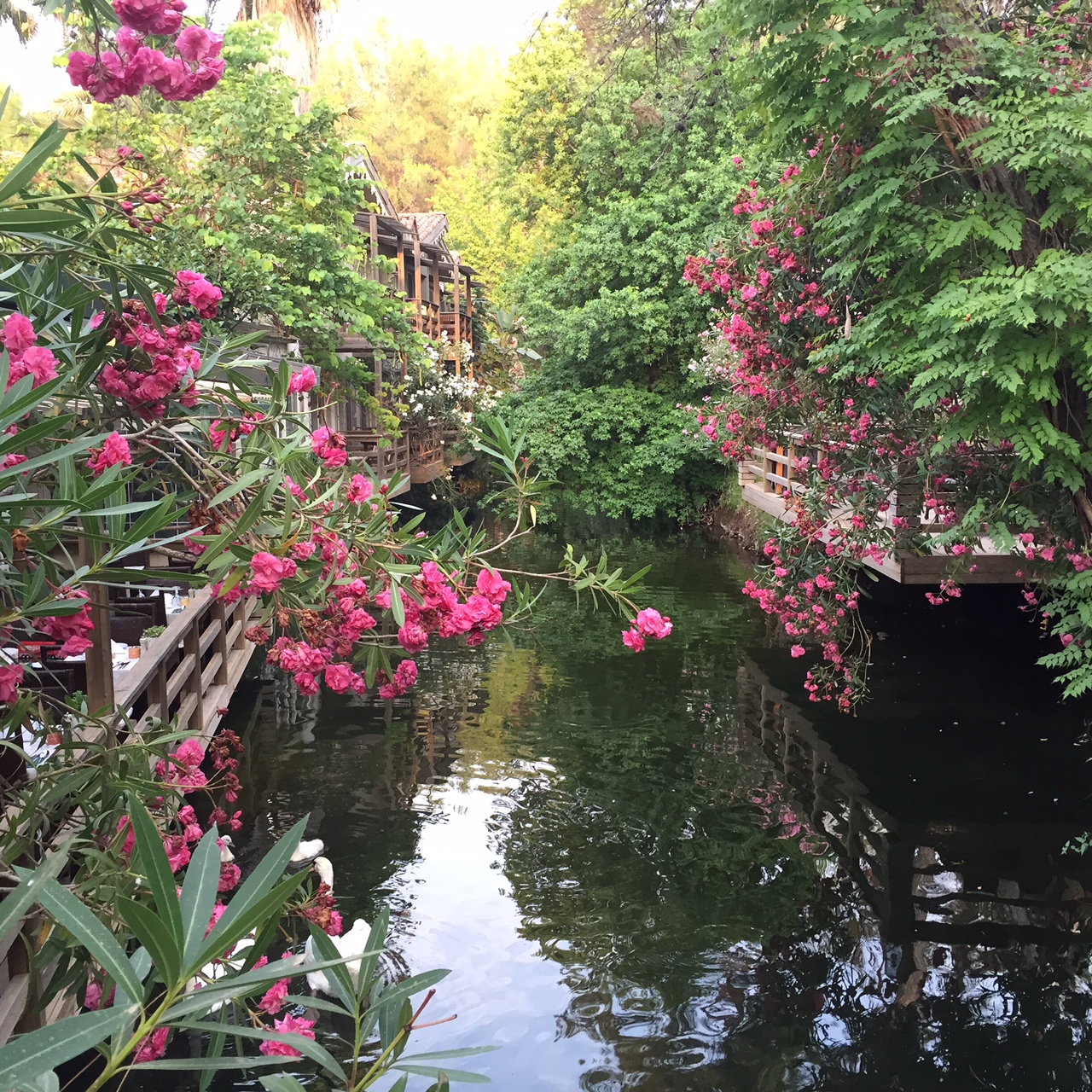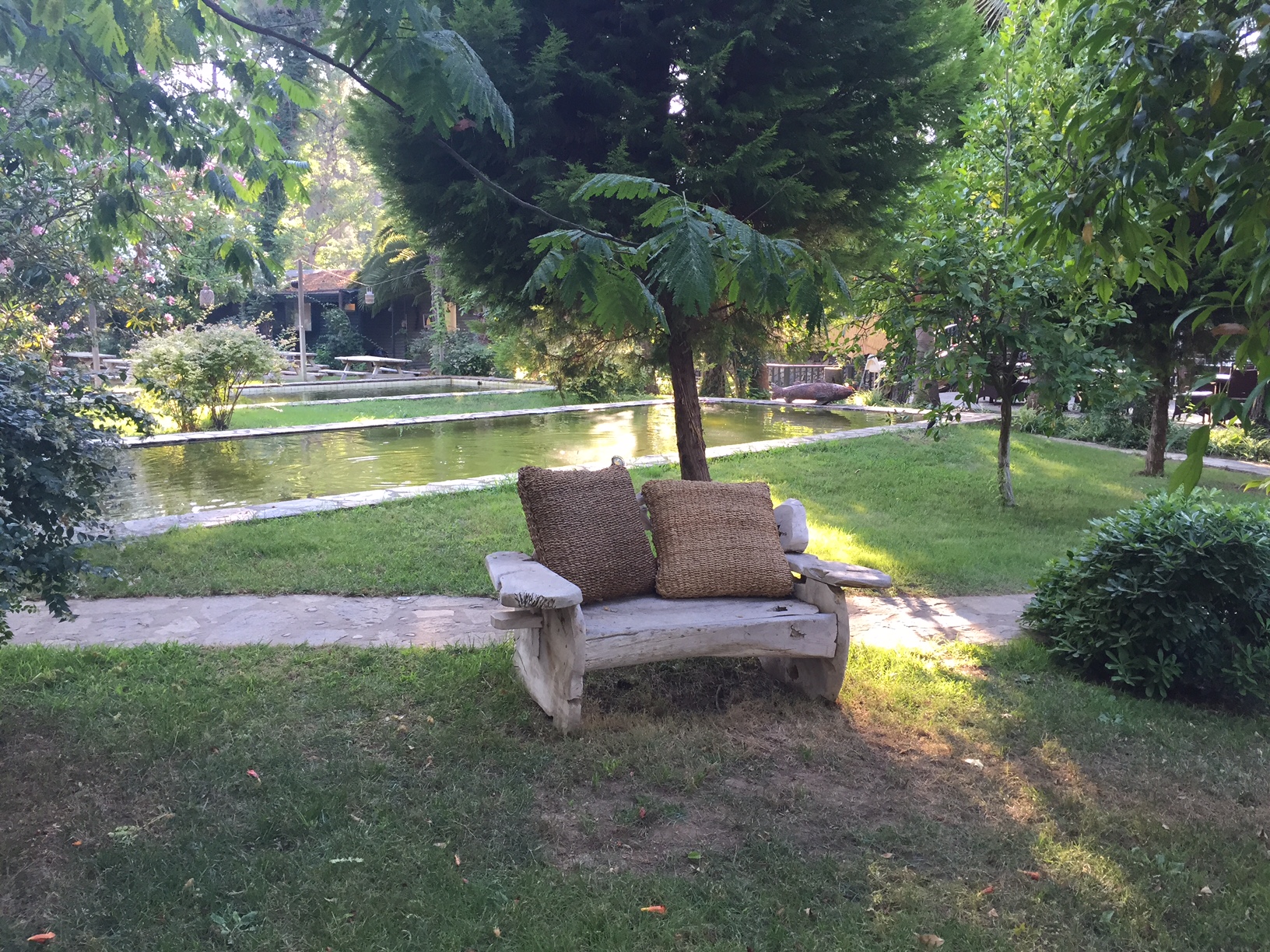 Restoran özellikle öğlen yemeklerinde bizi perişan etti şöyle ki üçümüz de kilo almış olarak döndük. Taş fırında pişen lahmacun kesinlikle favorim, bu kadar incesini Antep’te bile yemedim. Otlu peynirli pidesi ve köz patlıcanlı ince hamur pizzasını tavsiye ederim. Karpuz frozen, beş çayındaki cheesecake aramızda kalsın. Akşam yemeklerini biz dere kenarında otelin ana restoranında yemeyi tercih ettik fakat önceden rezervasyonla burada da deniz manzarası ve muhteşem gün batımı eşliğinde seçenek mevcut. Bu arada Pazartesi ve Perşembe akşamları barbekü zamanı. Nilüfer havuzunun etrafındaki tahta masalarda bir kır yemeği havasında geçen bu akşamı deneyimlemenizi öneririm.