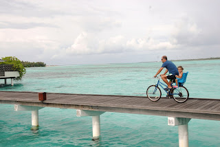Adada her yere bisikletle ulaşabiliyorsunuz ki, yıllarca bisiklet kullanmasını öğrenemeyen ben, orada yarım saat içinde çok da iyi bir kullanıcı oldum. Duru ve Erkan birinde, ben diğerinde begonvil ve hindistan cevizi ağaçları arasında yaptığımız ada turları hayatımda unutamayacağım anlardan oldu. Hele bir akşam , balık beslemeye giderken muson yağmurlarına yakalanıp sırılsıklam bir halde üçümüzün orman içinde bisikletle gitmesi vardı ki , istesek planlasak bunu asla gerçekleştiremezdik. Mutluluğun bir resmiydi o an sanki.