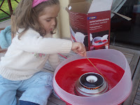 Ama artık o da mutlu ben de. Çünkü pamuk helvasını kendi yapıyor. Babasının aldığı makina ile sadece şekeri koyuyoruz ve yüksek ısıda telleşip karamelize olan toz şekerden pamuk helva yapıp afiyetle yiyoruz. Henüz beyaz yapmakta ısrarlıyım ama pembe diye tutturmuyor değil. Eh biraz gıda boyası koyacaz artık