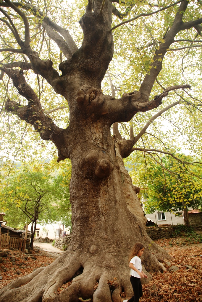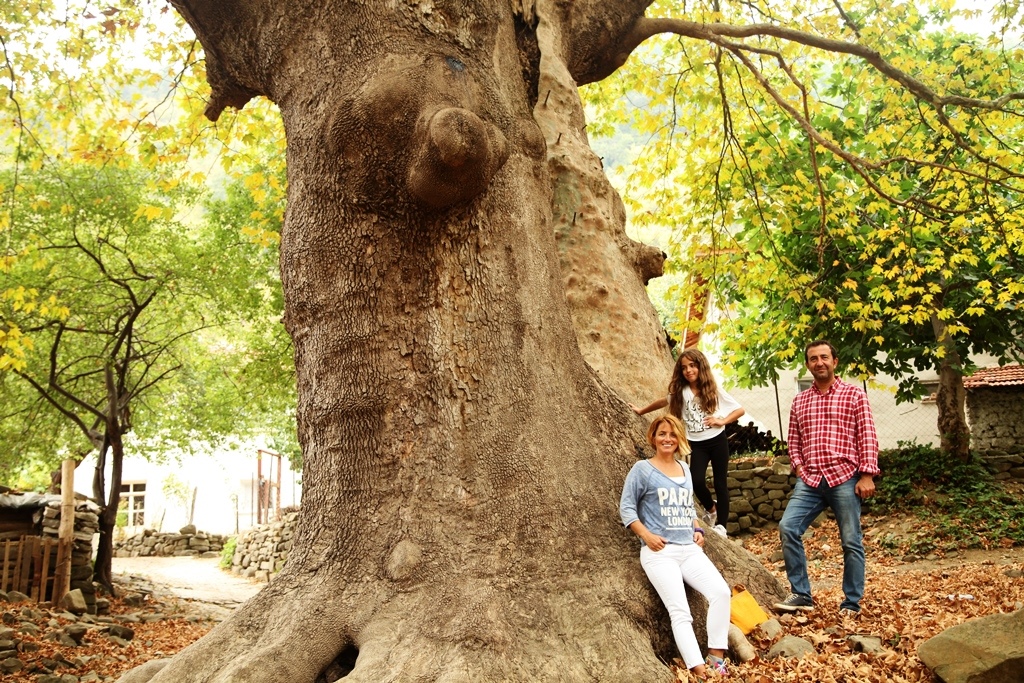 GüzelköyKöyün eskilerinden Alaattin Bey köyü gezdirirken bir yandan da büyüdüğü sokakları bahçeleri özlemle anlatıyor. Türk mahallesine doğru ilerlerken Cenevizlerden kaldığı tahmin edilen köprüden geçiyoruz önce. Sırasıyla bugün kullanılmayan taş camii, hamam ve Melen Çayı’nın küçük kollarını geçerek hünnap, incir ağaçları eşliğinde geziyoruz. Bölge zamanında kiremit üretim merkeziymiş ve yolda yürürken gördüğümüz bazı kiremit parçalarında Ganohora Kiremit yazılarını okuyoruz. Rivayete göre Vatikan’ın kiremitleri bu bölgeden temin edilmiş. Alaattin Bey’in bahçesinden hünnap, incir, domates, salatalık yiyerek karnımızı doyurup Uçmakdere’ye doğru yola çıkıyoruz.