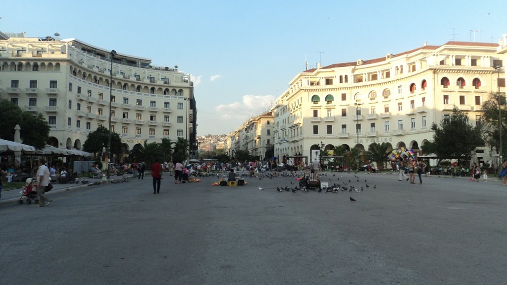 Kavala’dan çıkıp öğle sonrası Selanik’e geldiğimizde şehrin merkezinde kalacağımız Mediterranean Otelini bulmamız hiç de zor olmadı. Selanik o kadar düzenli bir şehir ki her yere çok rahat ulaşabiliyorsunuz. Zaten düzeni dışında herşeyi ile Türkiye’ye benziyor özellikle de İzmir’e. Selanik sahilinde Beyaz Kule’ye doğru yürürken kendinizi İzmir Kordonboyu’nda yürüyor hissediyorsunuz. Otelimiz ünlü Aristoteleus Meydanına birkaç yüz metre mesafede olduğundan ve şehri gezmek için de geç bir saat olduğundan önce ünlü Tsimiski caddesinde alışveriş yapmak daha sonra da meydanın çevresine sıralanmış şık kafelerde birşeyler içmek bize cazip geldi. Aristoteleus Meydanı bizim İstiklal caddesi gibi çok ünlü ve çok merkezi. Güvercinleri, sokak satıcıları, simitçisi ile her ne kadar ayrı ülkeler olsak da aynı kalpleri taşıdığımızın bir göstergesi. Akşam Yemeği öncesi, Beyaz Kulenin önünden kalkan “Thessaloniki on the go” yani Selanik şehir turu yapan otobüse bindik ki, şehrin önemli tarihi eselerinin yerini, dar sokaklarını, Atamızın evini ve Türk konsolosluğunu görme şansımız oldu.